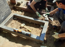 Далее восстановили уже существующую дорожку к месту захоронения, выполненную из бетонной плитки.