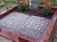 Мы восстанавливаем могилы исходя из любого исходного состояния. Так было и в этот раз. Мы изготовили и установили гранитный цоколь из красного гранита, клиент просил избегать черного цвета. Установили дубовые кресты и восстановили положение памятника, который был на могиле изначально. Посадили два можжевельника и оставили зону для будущих посадок цветов.