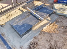 Разравниваем холмик, устанавливаем сваи, на сваях формируем металлический фундамент. На это основание строго по уровню устанавливаем цветник и подставку.