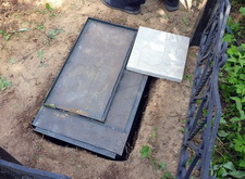 Глубина ямы точно соответствовала высоте нового саркофага, а потому наземное покрытие, которое мы положим в дальнейшем, будет смотреться ровно и без ощутимых перепадов.