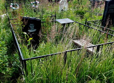 Небольшое место захоронения давно нуждалось в тщательной уборке: надпись на памятнике потускнела и стала практически неразличимой; оградка, надгробье, и другие элементы декора запылились и испачкались; а сквозь бетонную плитку проросла сорная трава.